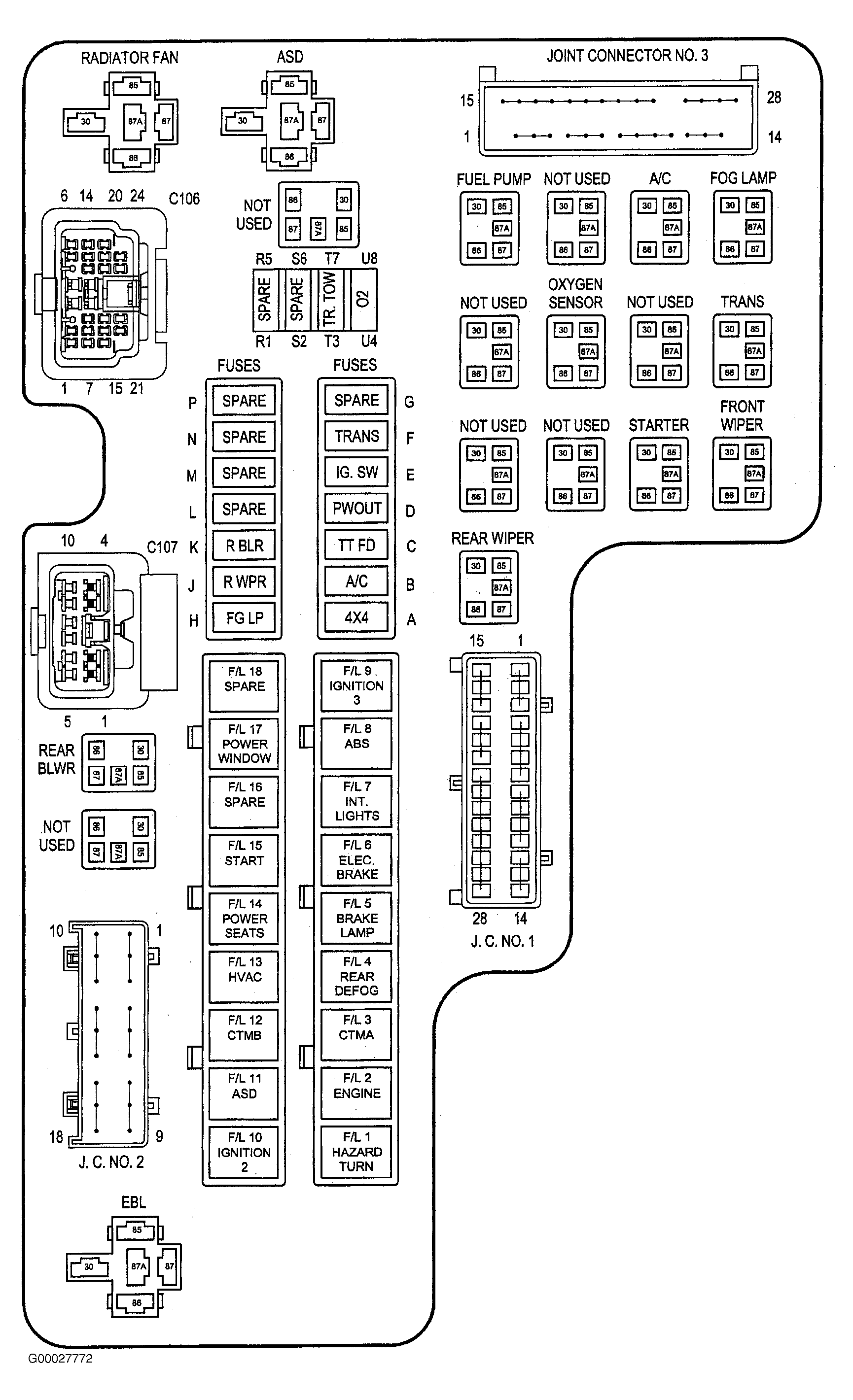 - Remove front wiper relay. Using test light connected to ground, probe front wiper relay cavities No. 86 and 87 (Dark Blue wires). If test light illuminates at both cavities, go to next step. If test light does not illuminate at both cavities, repair open in appropriate Dark Blue wire between front wiper relay and Blue 15-pin instrument panel junction block connector C2. See POWER DISTRIBUTION article in WIRING DIAGRAMS.