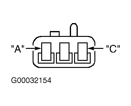 4. Ensure ignition is off. Disconnect driver power seat horizontal motor sensor connector. Turn ignition on. Measure voltage between ground and driver power seat horizontal motor sensor connector terminal "C", seat sensor 5-volt supply circuit (Brown/White wire). If voltage is more than 5.5 volts, repair short to voltage in Brown/White wire. If voltage is 5.5 volts or less, leave driver power seat horizontal motor sensor connector, and go to next step.