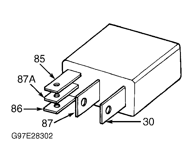- Measure resistance between door unlock relay (component side) terminals No. 30 and 87a. If resistance is more than 5 ohms, replace door unlock relay. If resistance is 5 ohms or less, leave door unlock relay removed, and go to next step.