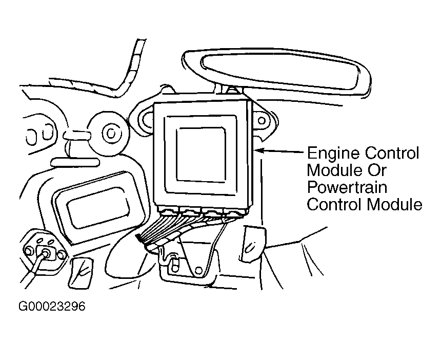 Engine control module or powertrain control module is located behind glove box. See Fig 1. Service information is not available from manufacturer.