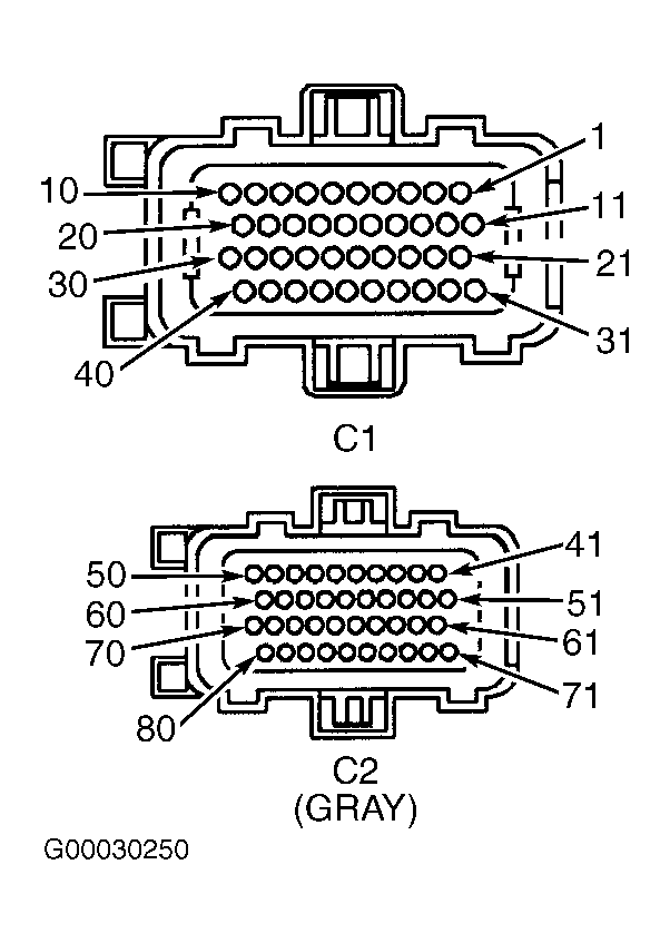 - Measure voltage drop in signal circuit (Tan/White wire) by backprobing between 1/2 HO2S harness connector and terminal No. 51 at PCM C2 harness connector. See Figure and Figure . With engine idling, note voltage reading. If voltage drop is less than .1 volt, go to next step. If voltage drop is .1 volt or more, repair high resistance in signal circuit.