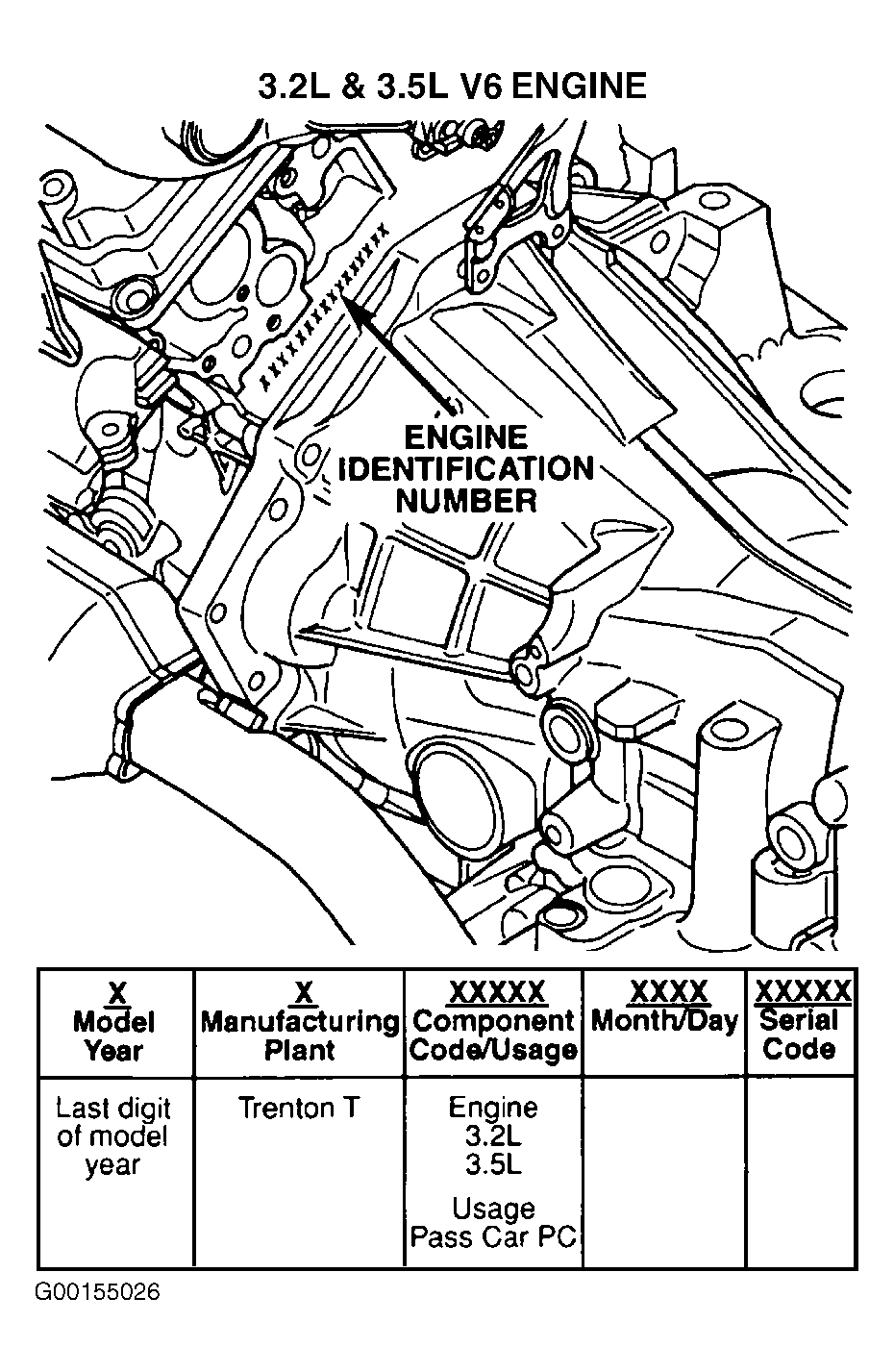 Fig 5: Locating Engine Identification Code (3.2L/3.5L V6 - 300M, Concorde, Intrepid, LHS, & Prowler)