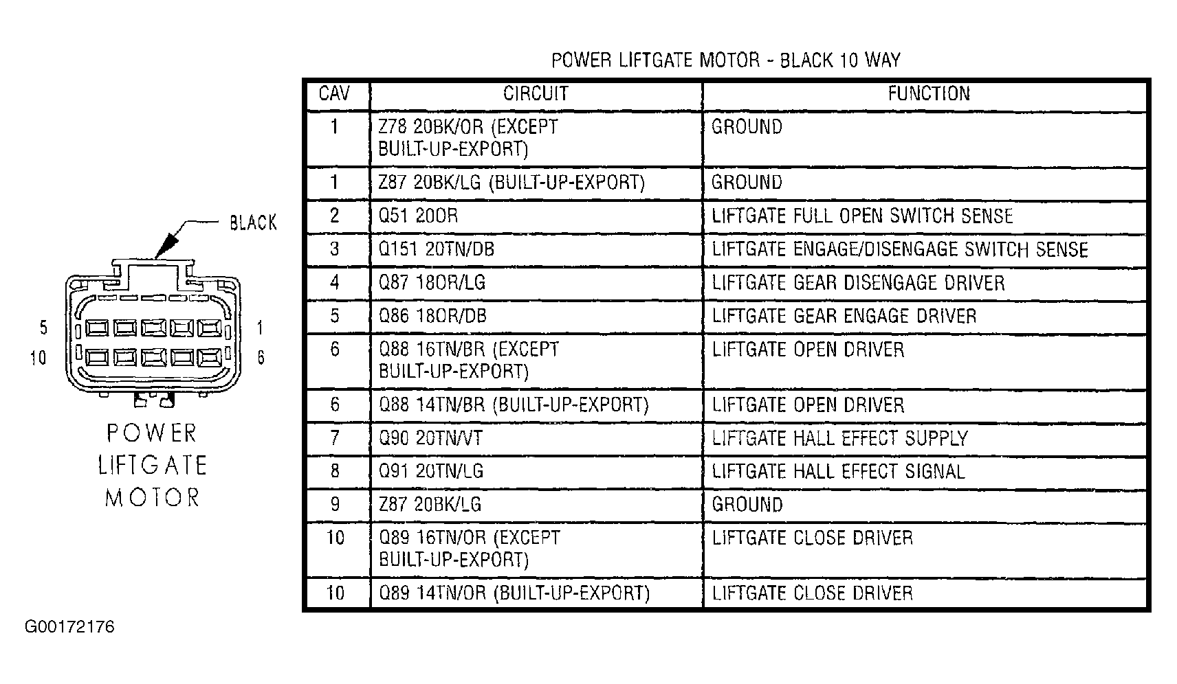 - If there are no possible causes remaining, replace the Power Liftgate Motor Assembly (hall effect switch). See POWER SLIDING DOORS & LIFTGATE article.