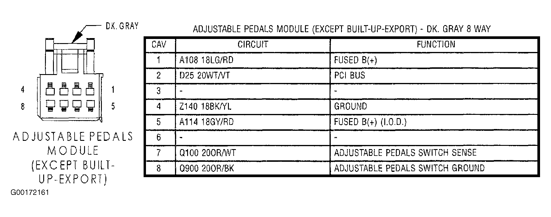 Fig 1: Identifying Adjustable Pedals Module Connector