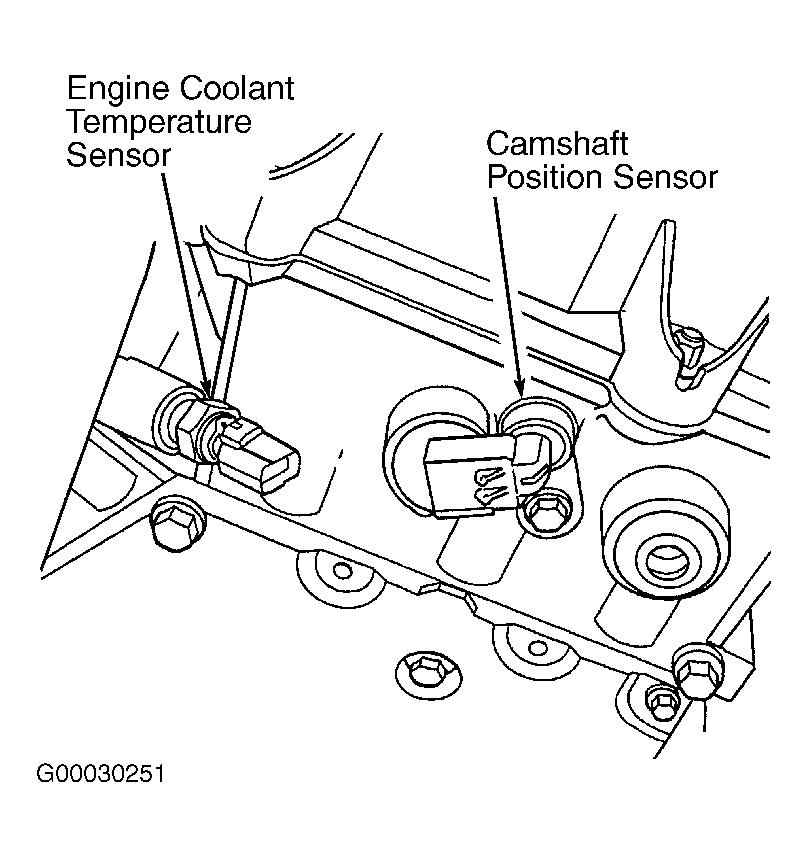 The Engine Coolant Temperature (ECT) sensor threads into the coolant system. See Figure or Figure . The ECT sensor provides an input to the PCM. As coolant temperature varies, the ECT sensor resistance changes resulting in a different input voltage to the PCM. When the engine is cold, the PCM will demand slightly richer air/fuel mixtures and higher idle speeds until normal operating temperatures are reached. The ECT sensor input also determines operation of the low and high speed fans.
