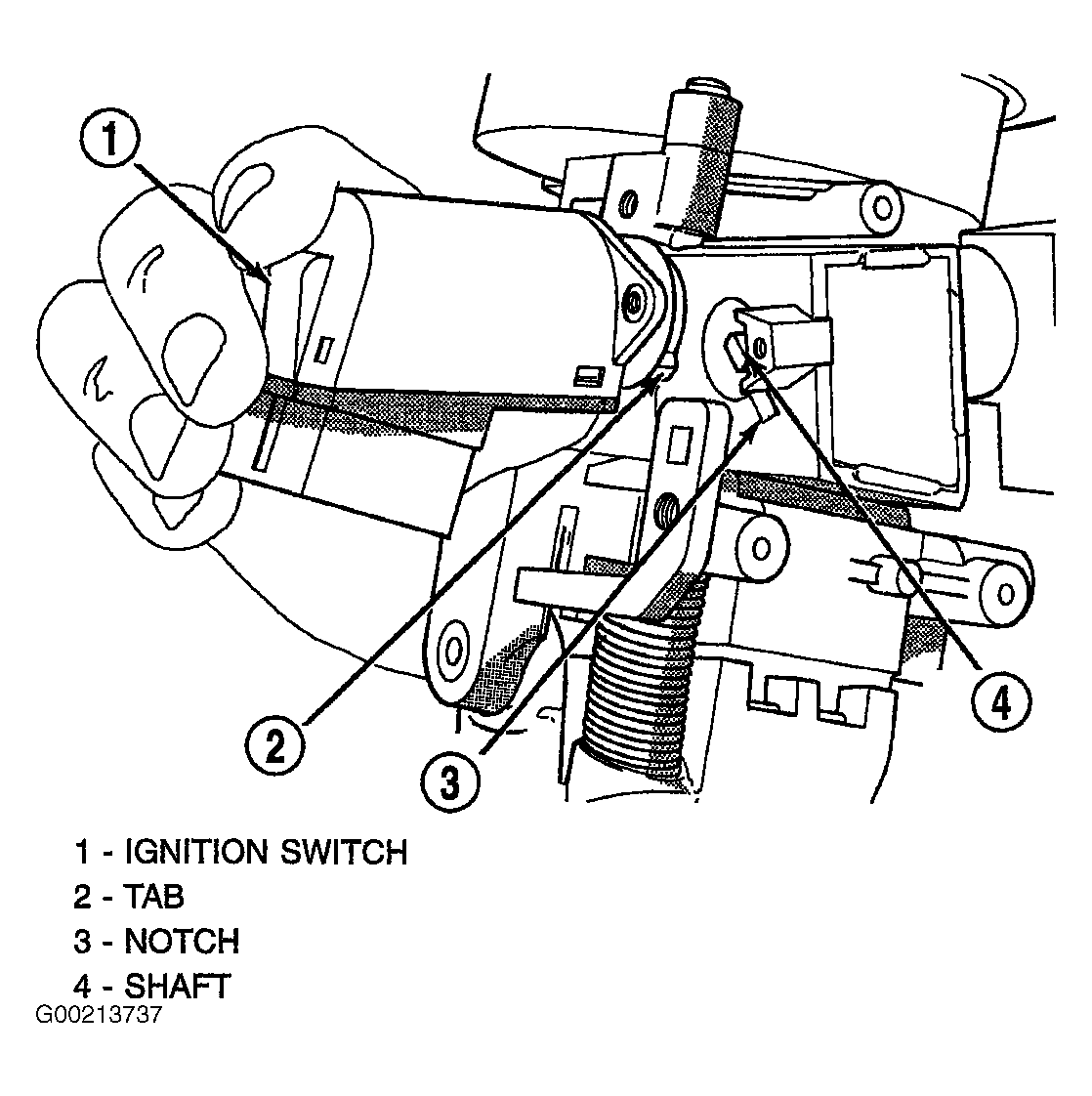 - A tab on the ignition switch indexes to a notch in the lock cylinder housing. A slot in the end of the ignition switch fits over the shaft in the end of the lock cylinder housing. See Fig 1