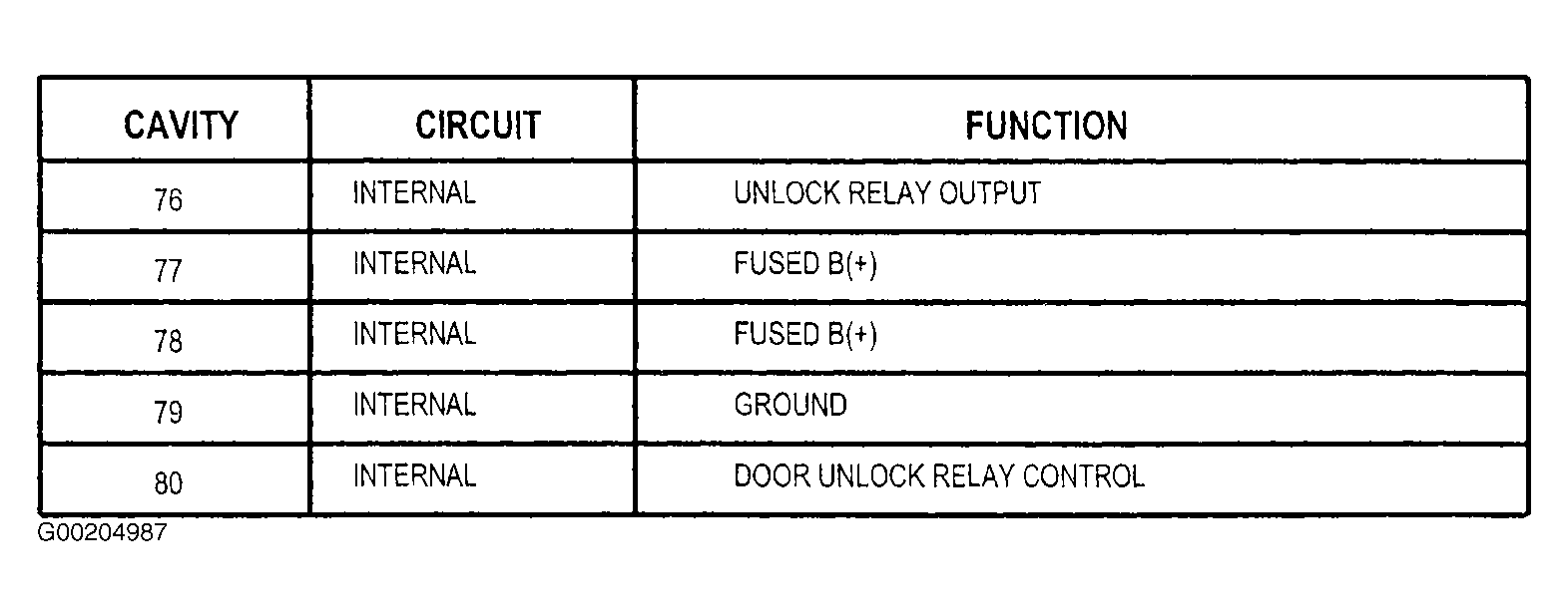 7. Measure resistance between ground and door unlock relay connector terminal No. 79. If resistance is 5 ohms or more, replace junction block. See JUNCTION BLOCK  under REMOVAL & INSTALLATION. If resistance is less than 5 ohms, fault may be intermittent. Check related wiring and connectors for poor connections or damage to wiring harness. See WIRING DIAGRAMS  . Repair any problems found as necessary. If no problems are found, check if any Technical Service Bulletins (TSBs) apply to vehicle. If no TSBs apply, test is complete.
