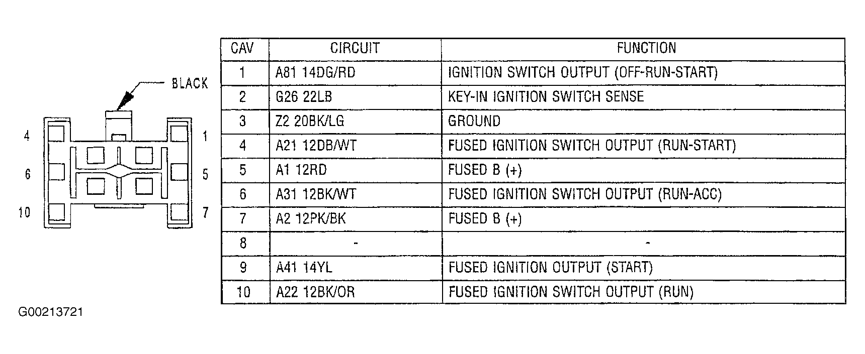 3. Ensure ignition is off. Disconnect ignition switch connector. Connect a fused jumper wire between ignition switch connector terminal No. 2, key-in ignition switch sense circuit (Light Blue wire) and terminal No. 3, ground circuit (Black/Light Green wire). See Figure . Using scan tool, read KEY-IN IGNITION status. If scan tool displays CLOSED, replace ignition switch. See IGNITION SWITCH  under REMOVAL & INSTALLATION. If scan tool displays OPEN, leave ignition switch connector disconnected and go to next step.