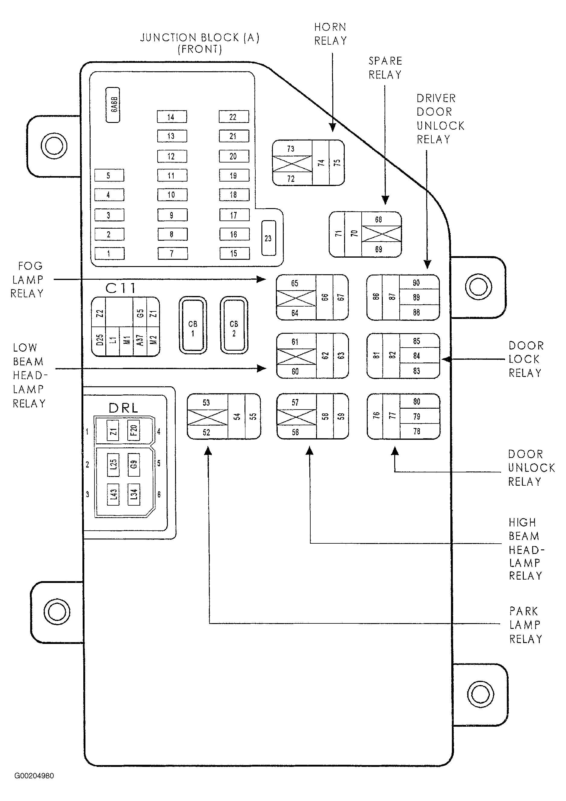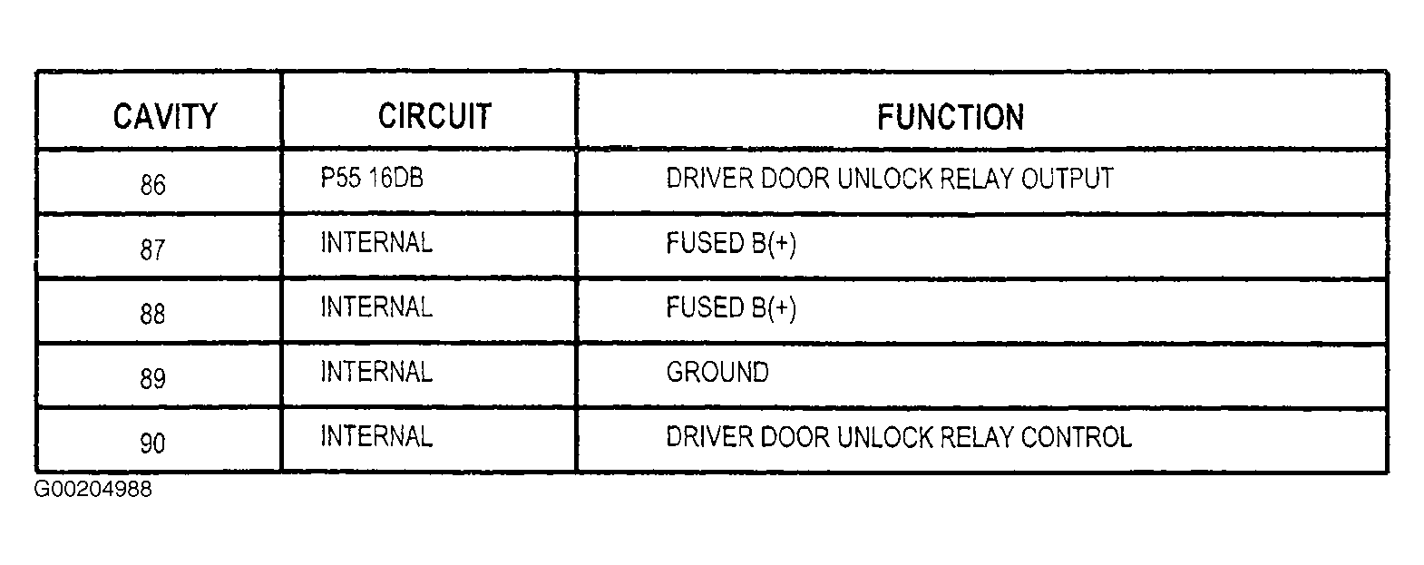 1. Remove driver door unlock relay from junction block. See Figure and Figure . Measure resistance between ground and driver door unlock relay connector terminal No. 89. If resistance is less than 5 ohms, replace driver door unlock relay. If resistance is 5 ohms or more, replace junction block. See JUNCTION BLOCK  under REMOVAL & INSTALLATION.