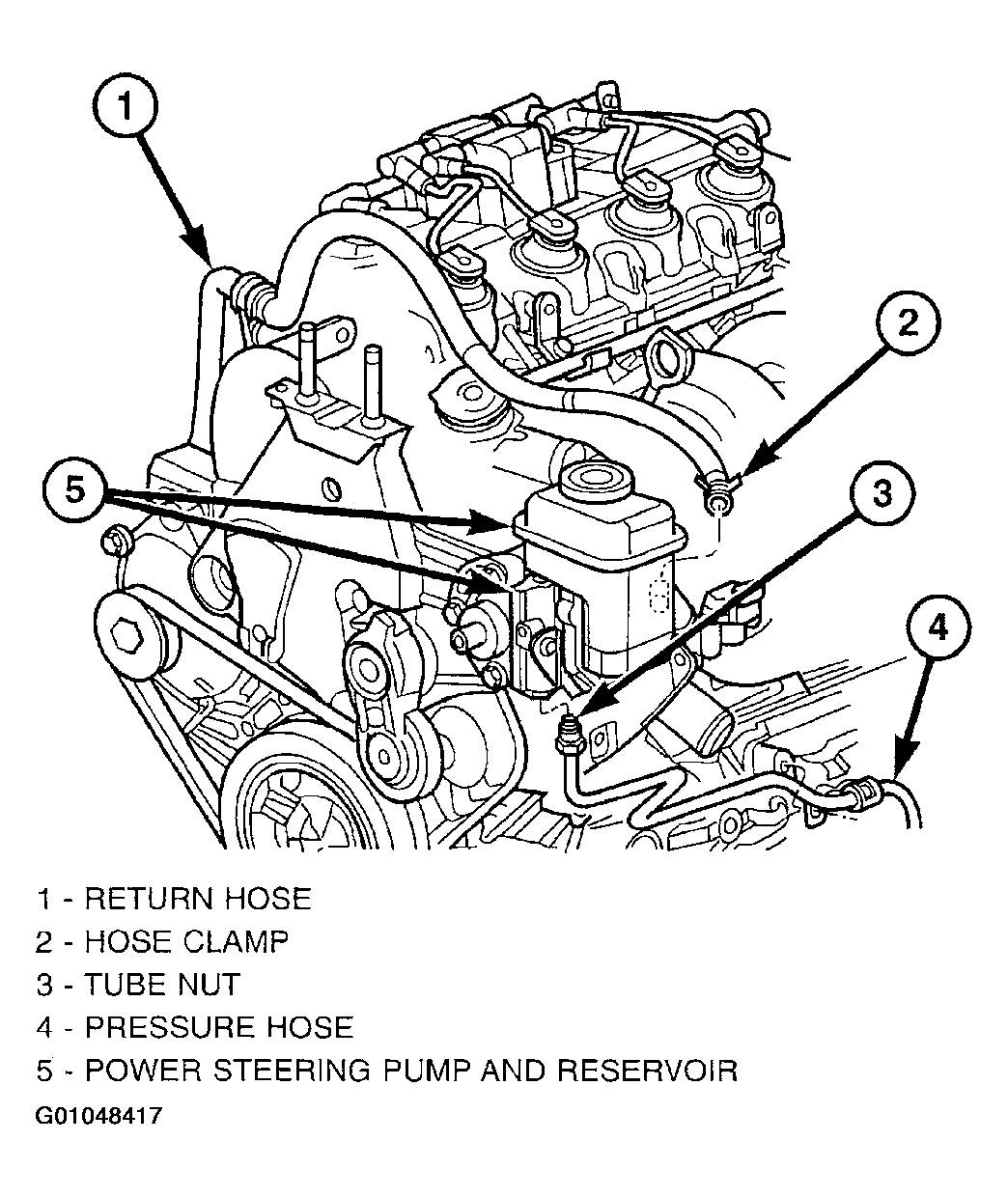 Fig 3: Identifying Power Steering Hoses At Pump