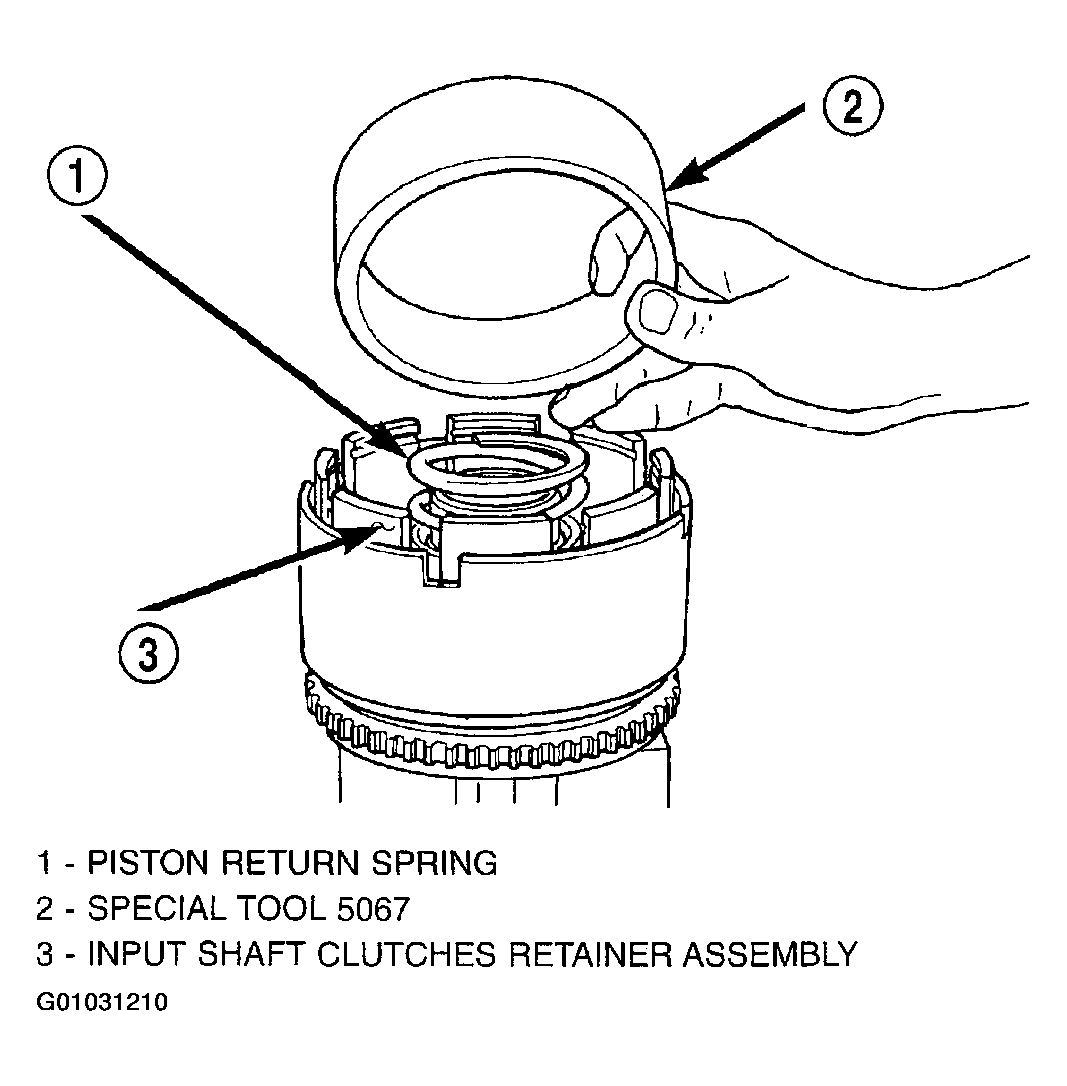 - Install UD piston return spring and Tool 5067 as shown in (Fig 9).