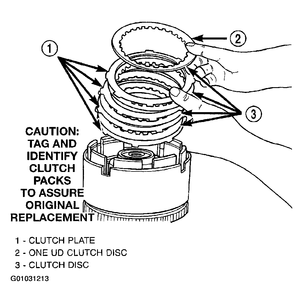 - Take average of four measurements and compare with UD clutch pack clearance specification. Underdrive clutch pack clearance must be 0.94-1.50 mm (0.037-0.059 in.).