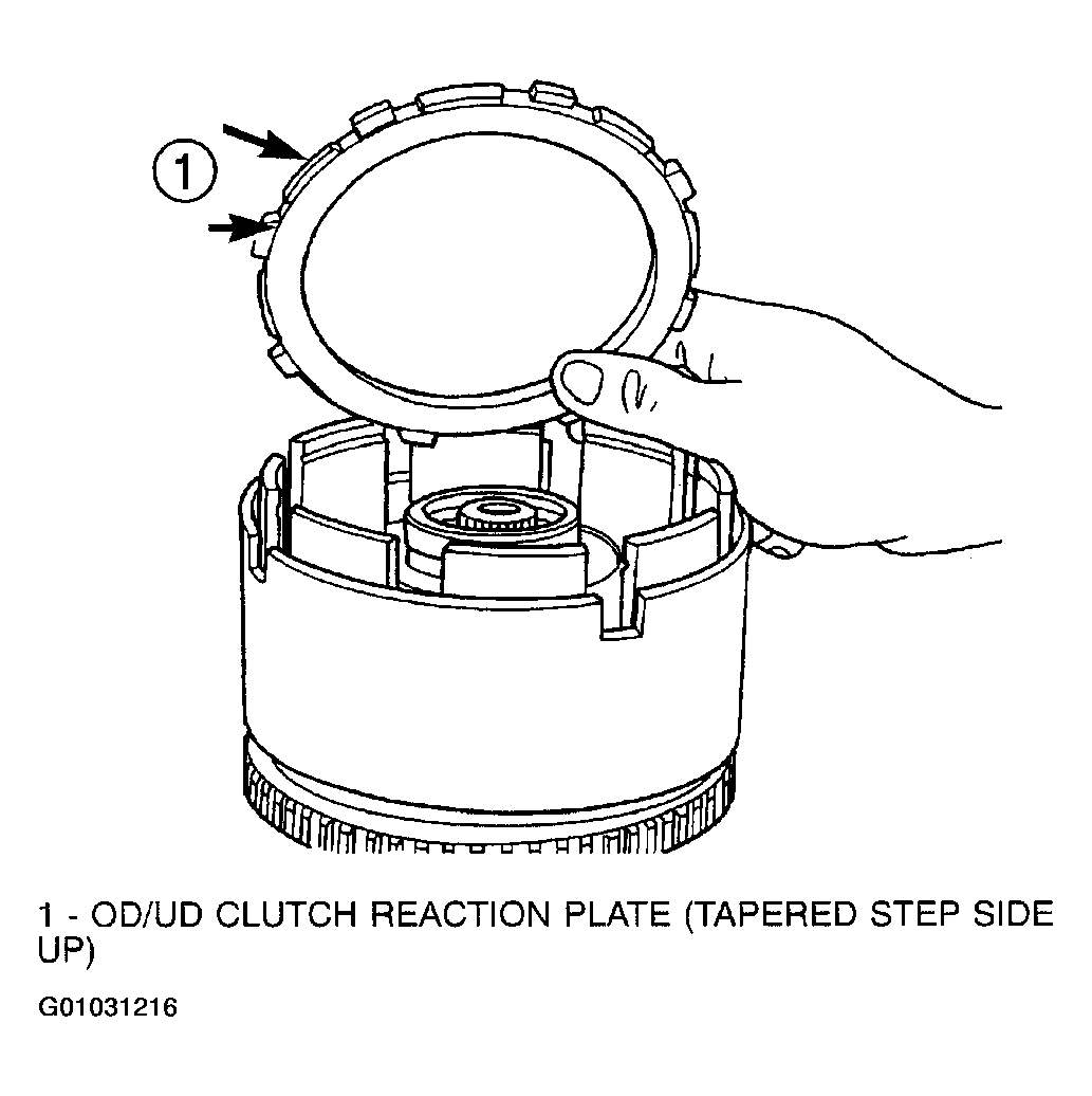 ). The OD/UD clutches reaction plate has a step on both sides. Install the OD/UD clutches reaction plate tapered step side up.