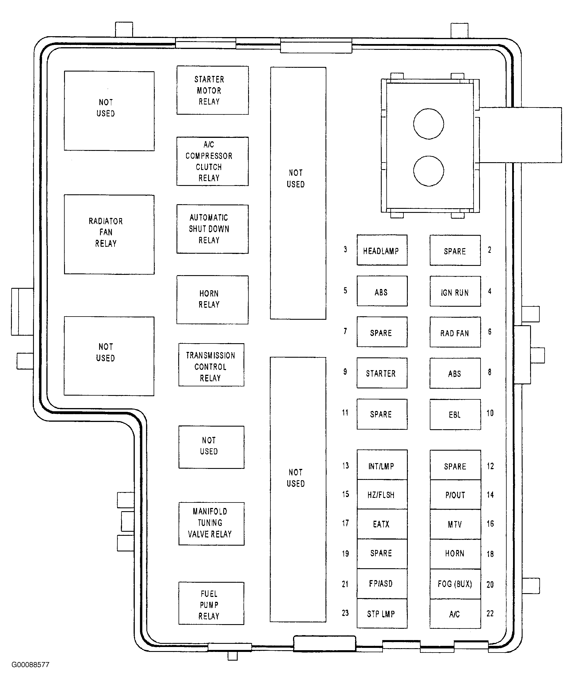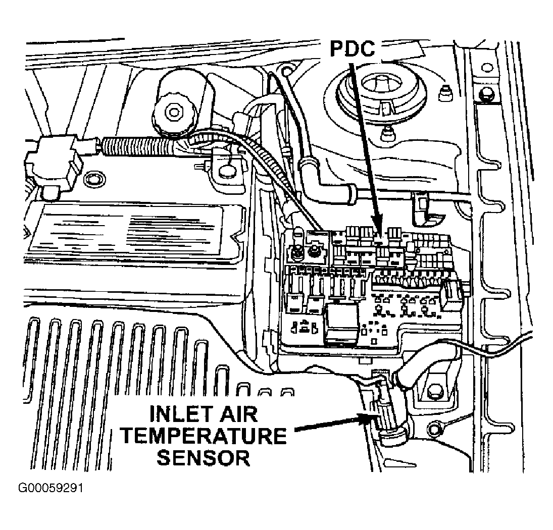 1. Turn ignition off. Remove fuel pump relay from Power Distribution Center (PDC). See Figure . PDC is located in engine compartment. See Figure .