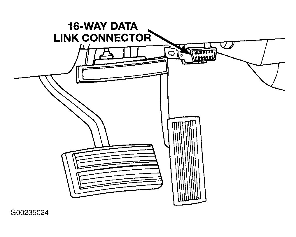 - Connect scan tool to Data Link Connector (DLC), located under left side of instrument panel. See Figure.