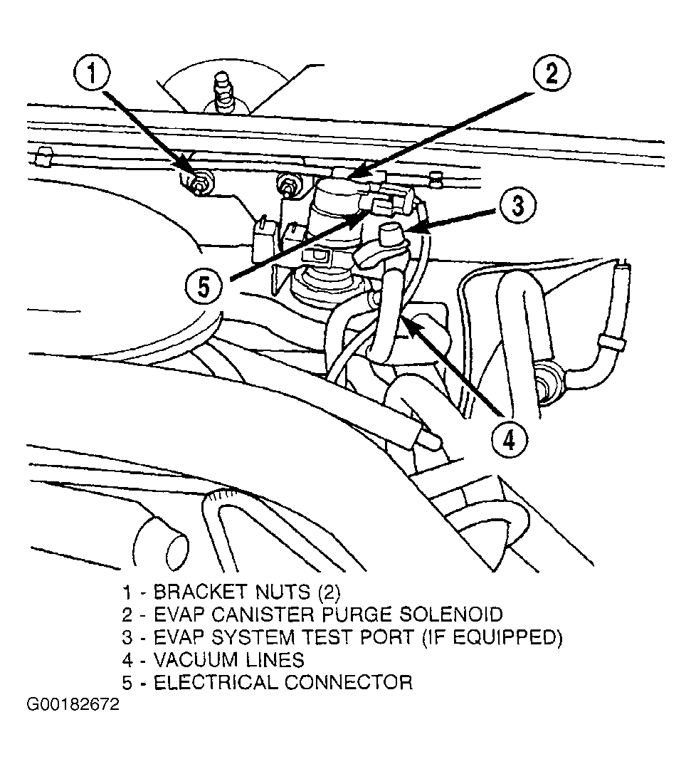 A maintenance free, EVAP canister is used on all vehicles. The EVAP canister is located under the vehicle, inside the left frame rail, in front of the fuel tank. See Fig 1 . Check EVAP canisters for loose, missing, cracked or broken connections and parts. Repair or replace as necessary. No liquid should be in canister.