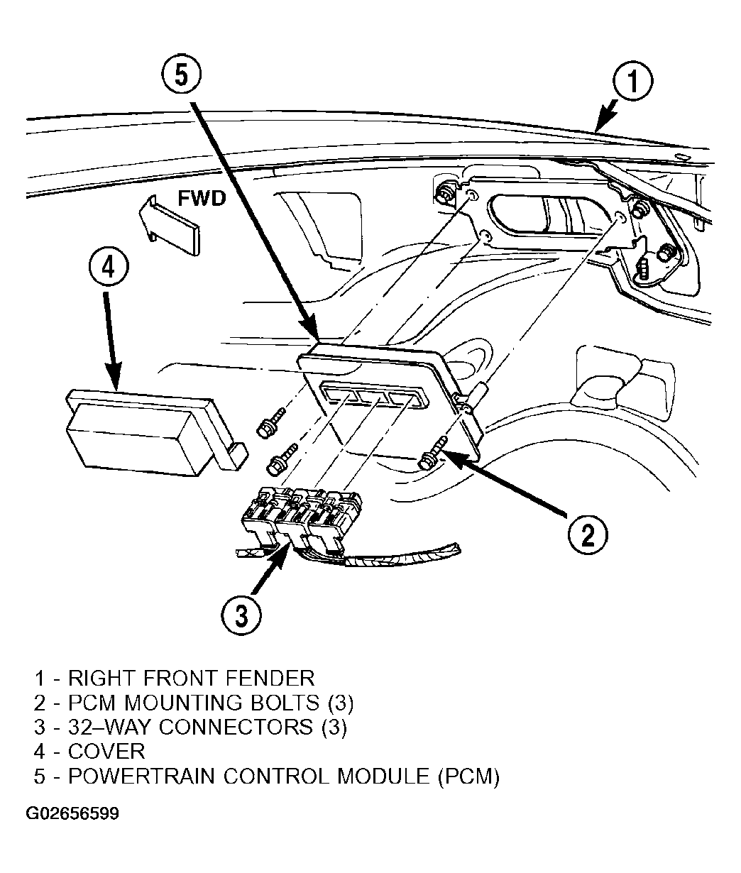 The Powertrain Control Module (PCM) is located in the engine compartment (Fig 1 ). The PCM is referred to as JTEC.