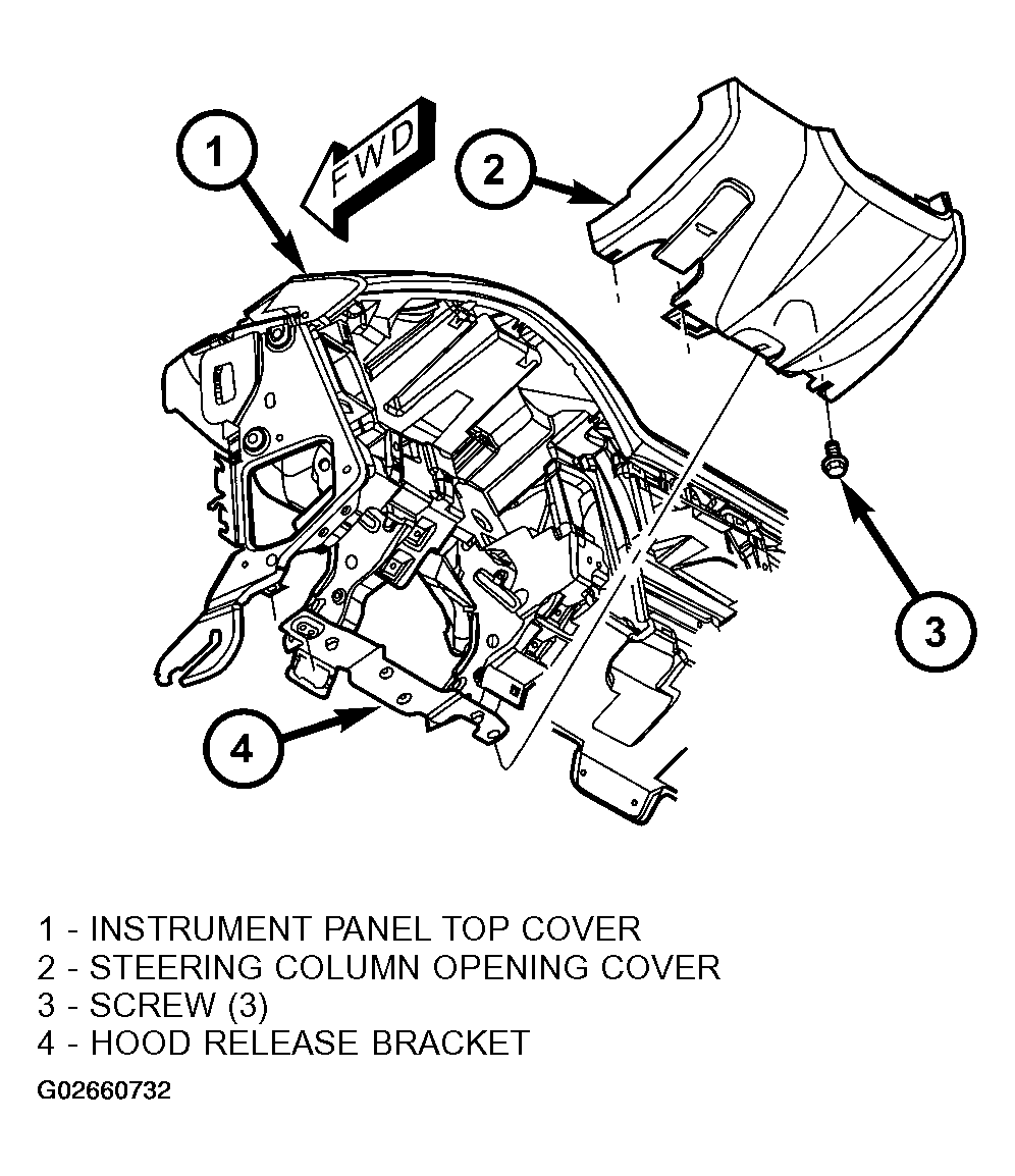 - Install the knee blocker and steering column opening cover, (Refer to INSTRUMENT PANEL - INSTALLATION ) (Figure ).