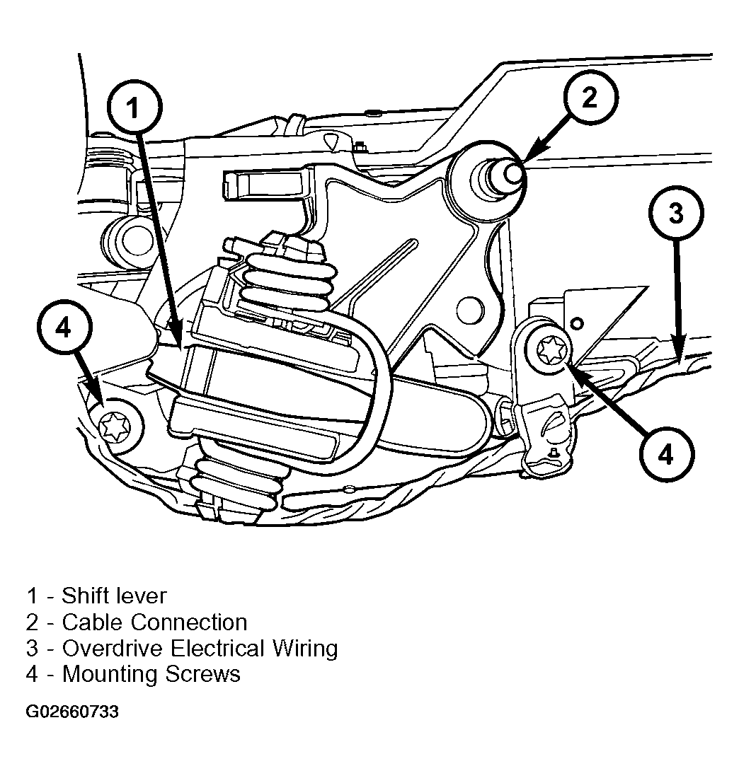 - Disconnect the shift cable by unsnapping the shift cable clip from the shift lever and remove from the cable bracket. (Fig 2 )