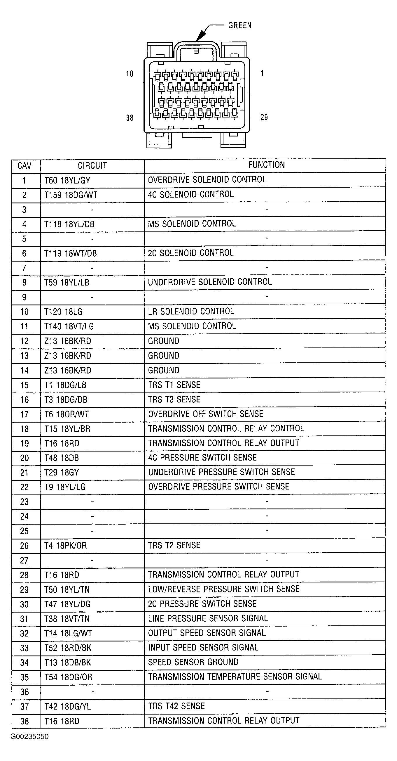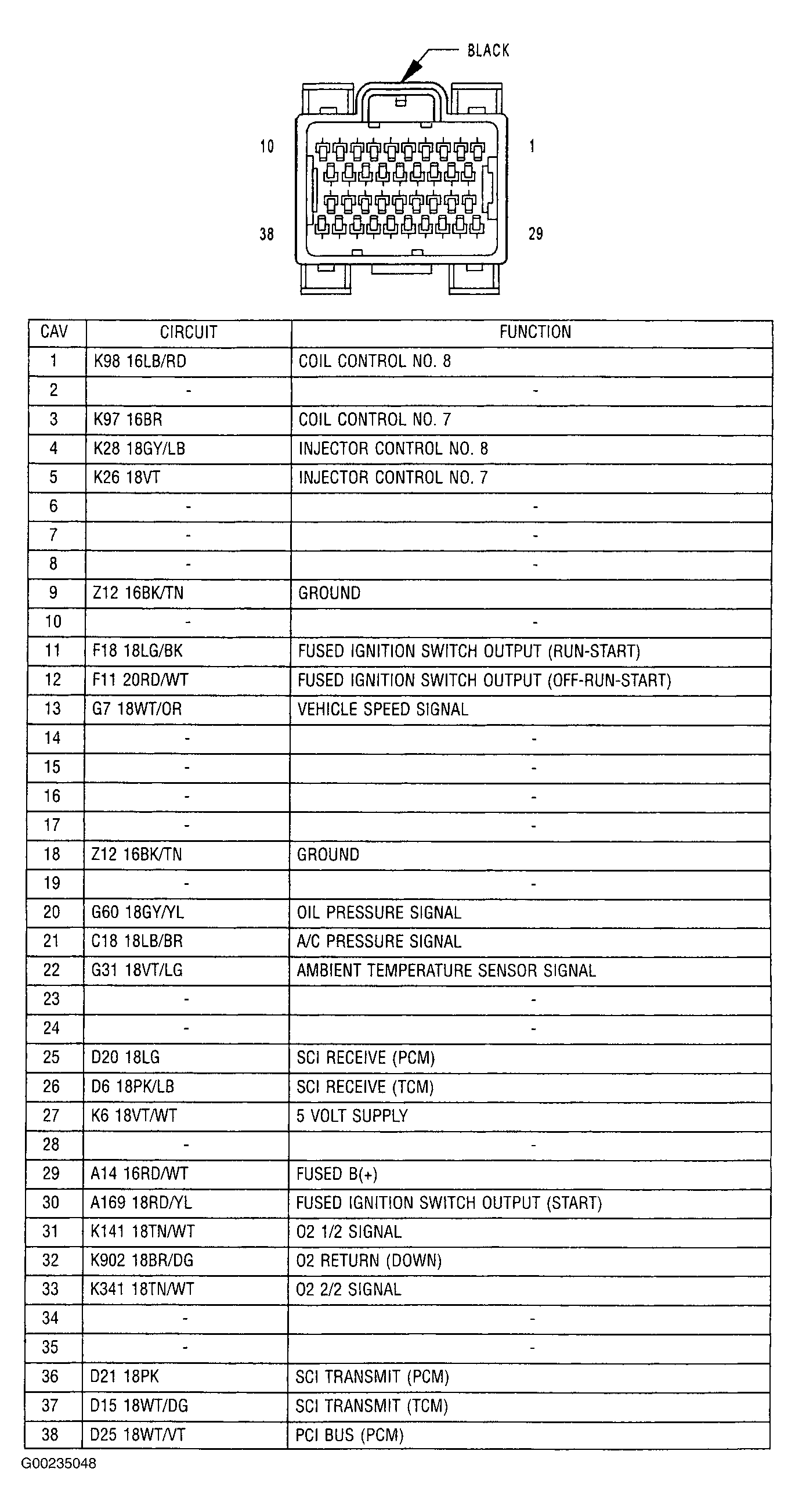 - Turn the ignition off. Disconnect the PCM harness connectors. See Figure . Using a 12-volt test light connected to ground, probe the PCM C1 fused B+ circuit in the appropriate terminal of the Miller Special Tool (8815). See Figure . Does the test light illuminate brightly? If yes, go to next step. If no, repair the PCM C1 fused B+ circuit for an open. Check related fuses and repair as necessary.