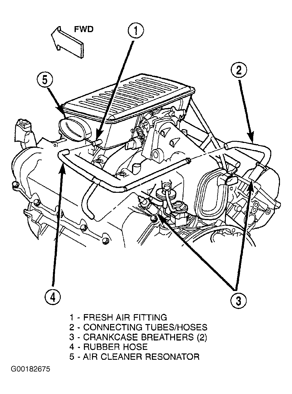 - Disconnect rubber hose from fresh air fitting at left side of air cleaner resonator box. See Fig 3