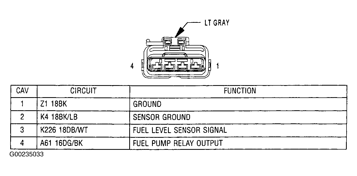 - Turn the ignition off. Using test light connected to 12-volts, backprobe the fuel pump ground circuit at the fuel pump module harness connector. If the test light illuminates brightly, go to next step. If test light does not illuminate brightly, repair the fuel pump ground circuit for an open or high resistance.