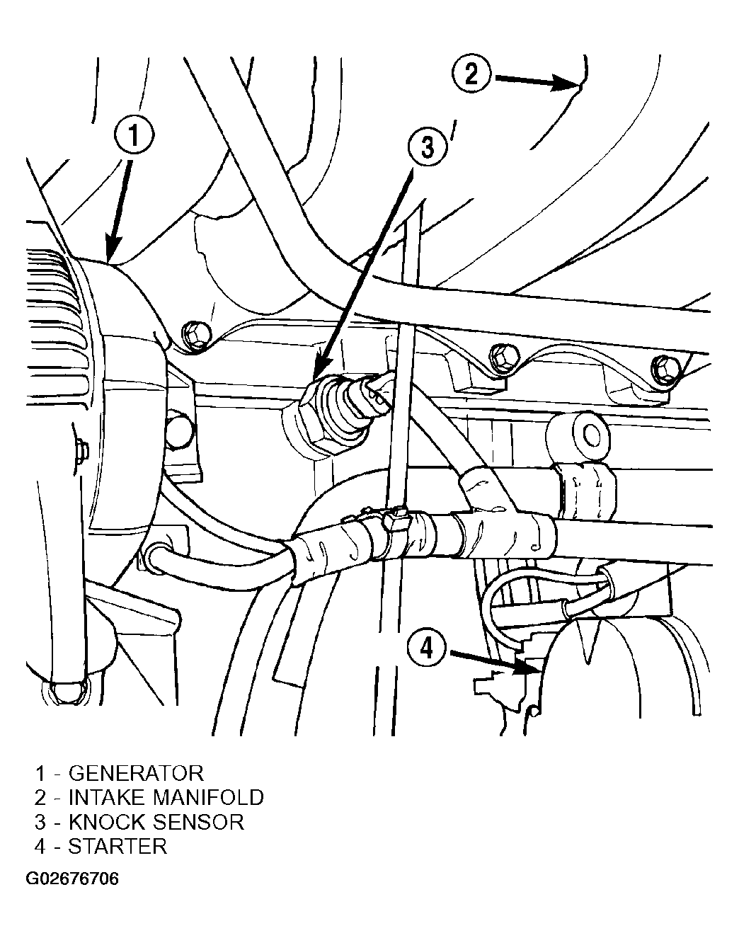 The knock sensor threads into the side of the cylinder block in front of the starter (Figure ).