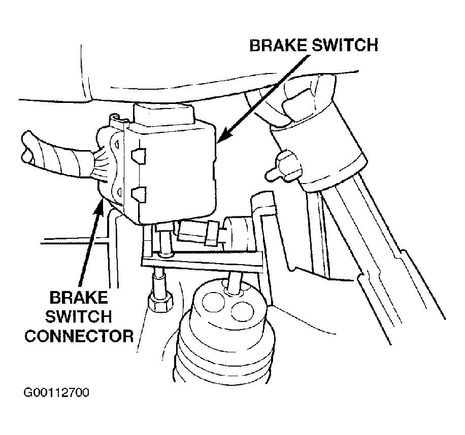 The brake switch is located under the instrument panel, at the brake pedal arm. See Fig 1 . The brake switch has 3 internal switches controlling various functions of the vehicle. Its main function is to control operation of the vehicle's brakelights. Other functions of the internal switches include speed control deactivation and brake sense for the ABS and the brake transmission shift interlock.