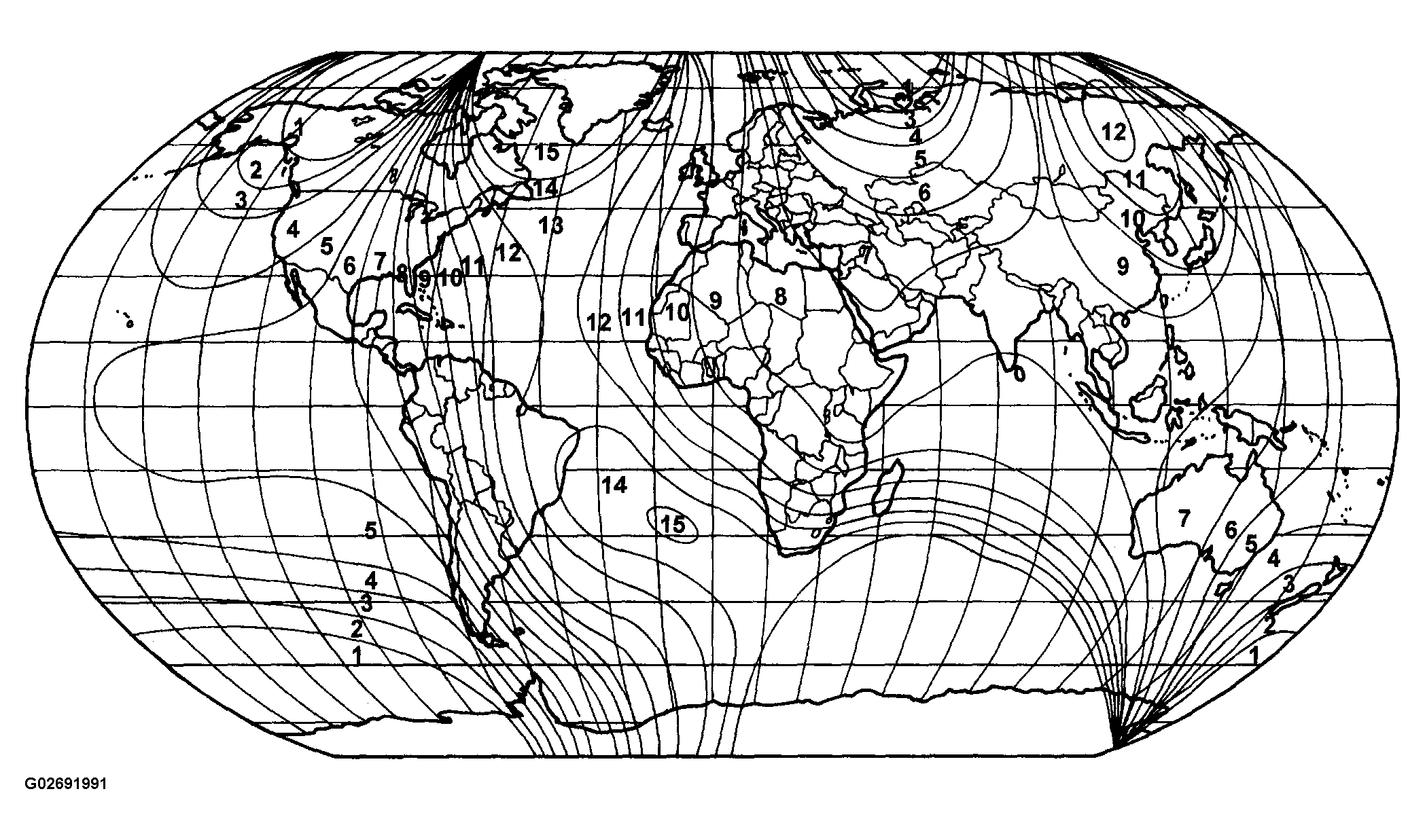 The compass has a default zone of 8. Refer to See Fig 1 to determine the correct zone number. The correct compass Zone selection is critical to proper compass operation. With the ignition in the ON position, pressing the Zone/Cal button (left reading lamp button) for 5-10 seconds and then releasing while ZONE is illuminated enters the compass into the Zone display mode. In the Zone display mode, ZONE will be illuminated instead of the temperature. The current Zone number, 1 through 15 will be displayed. While ZONE is illuminated; momentarily pressing the Zone/Cal button advances the zone to the next higher zone. When the desired zone number is displayed, do not press the Zone/Cal button again. After 5 seconds, the Zone Variance number will be stored in the module memory.