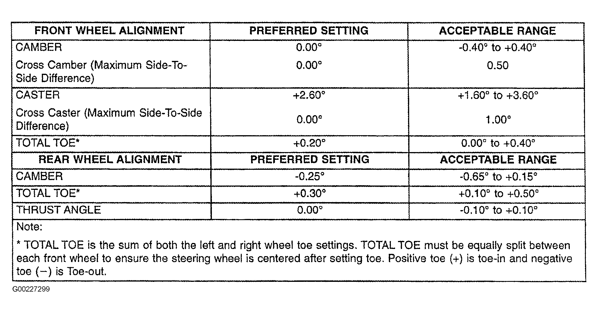 Fig 1: Wheel Alignment Specifications (Without ACR Package)