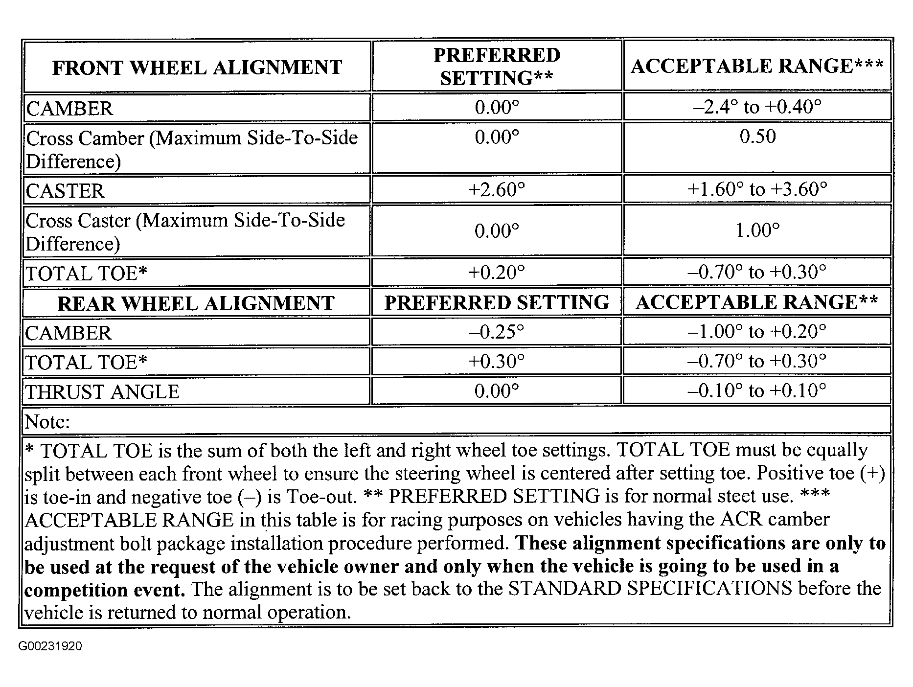 Fig 2: Wheel Alignment Specifications (With ACR Package)