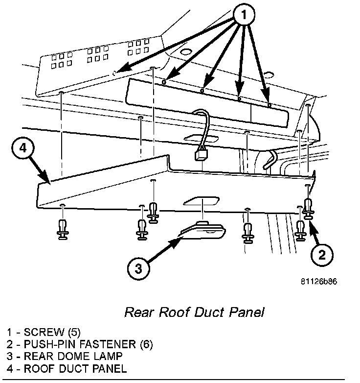 4. Remove the six push-pin roof duct panel fasteners and remove the duct panel from the vehicle.