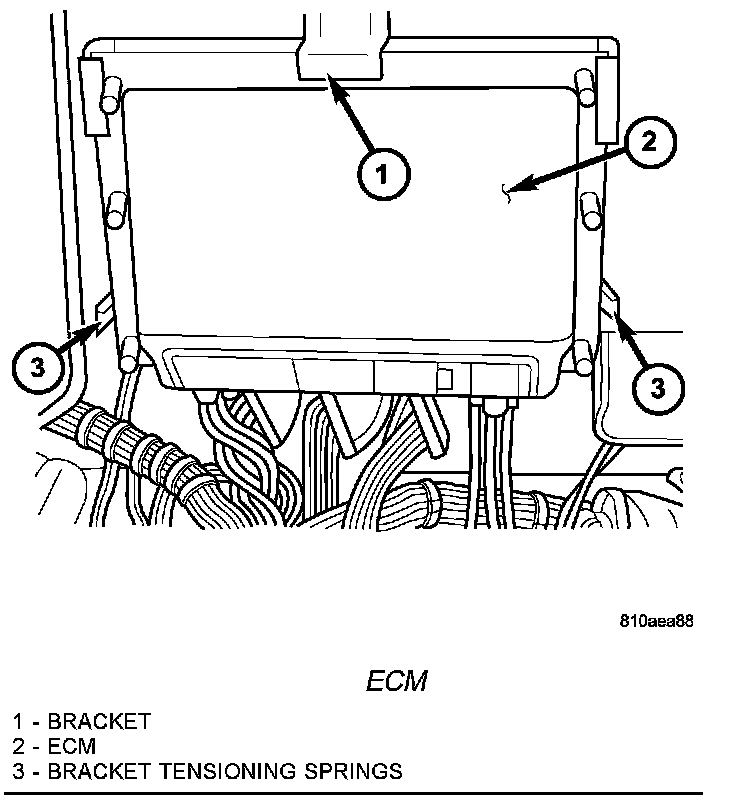3. Grasp ECM and pull down firmly to release ECM from the retaining bracket tensioning springs.
