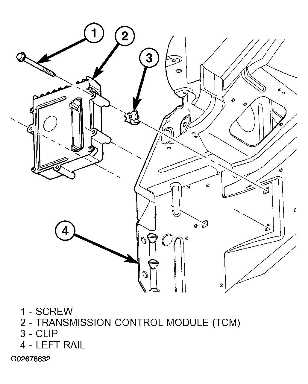 - Install TCM into position (Fig 1). Install three (3) screws and torque to 3 N-m (30 in. lbs.).