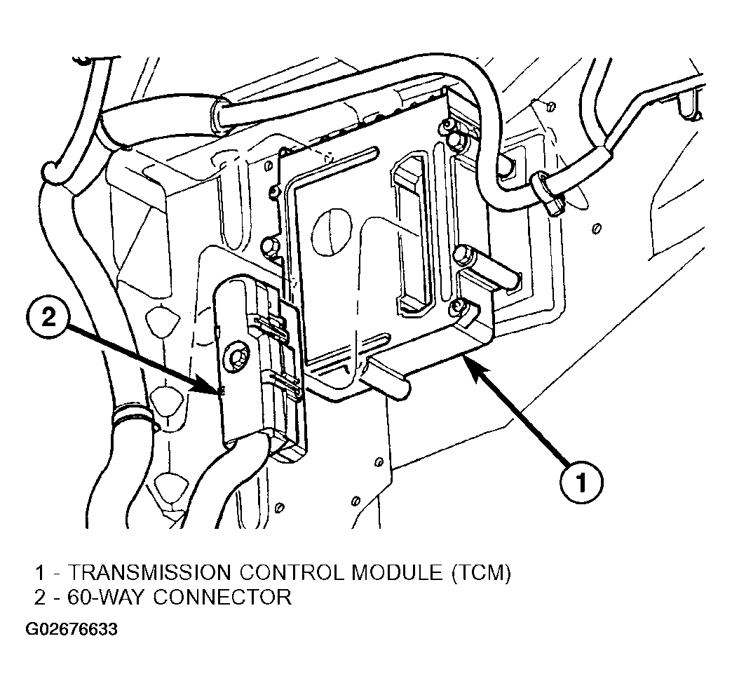 - Install TCM harness 60-way connector (Fig 2) and torque to 4 N-m (35 in. lbs.).