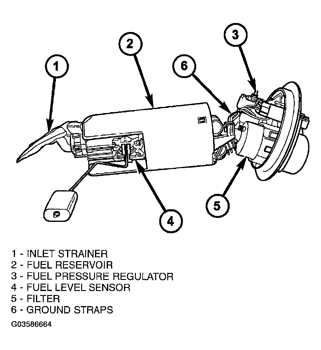 The inlet strainer, fuel pressure regulator and fuel level sensor are the only serviceable items. If the fuel pump or electrical wiring harness requires service, replace the fuel pump module.