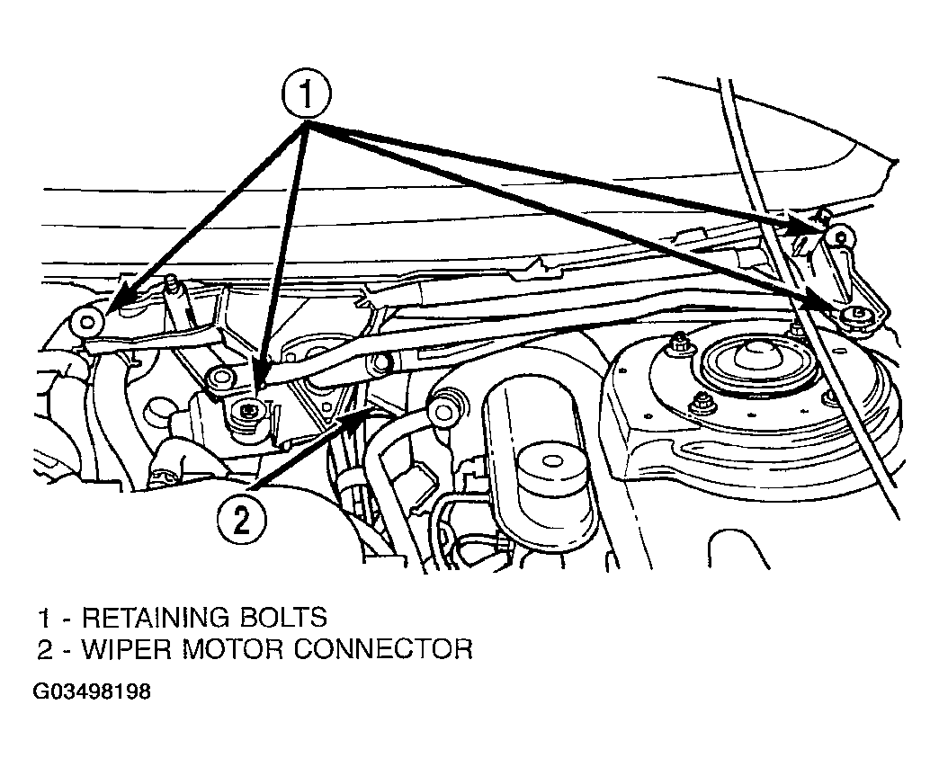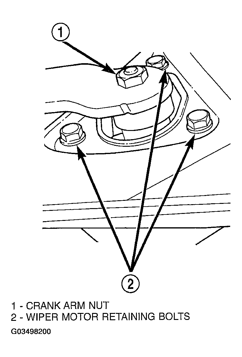 - Install the three retaining bolts to the wiper motor (Figure ).