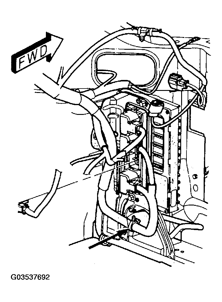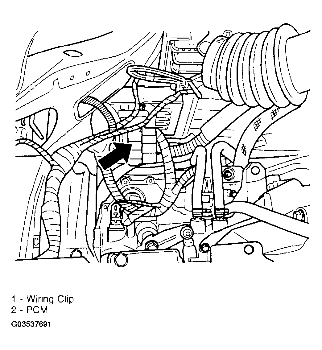 - Install the wiring harness clip (Figure) to the PCM bracket.NOTE: The electrical connector for the PCM are COLOR Coded.