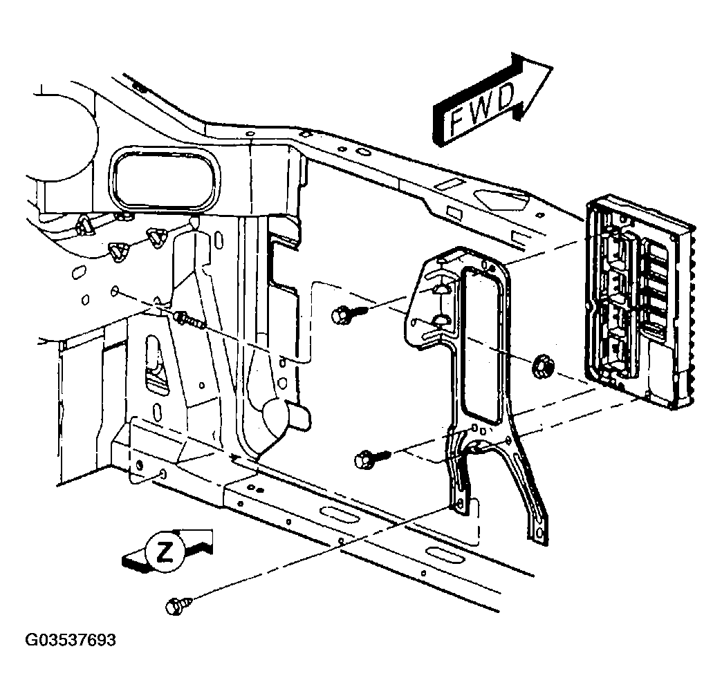 - Install the mounting bolts to the bottom of the PCM bracket (Figure).
