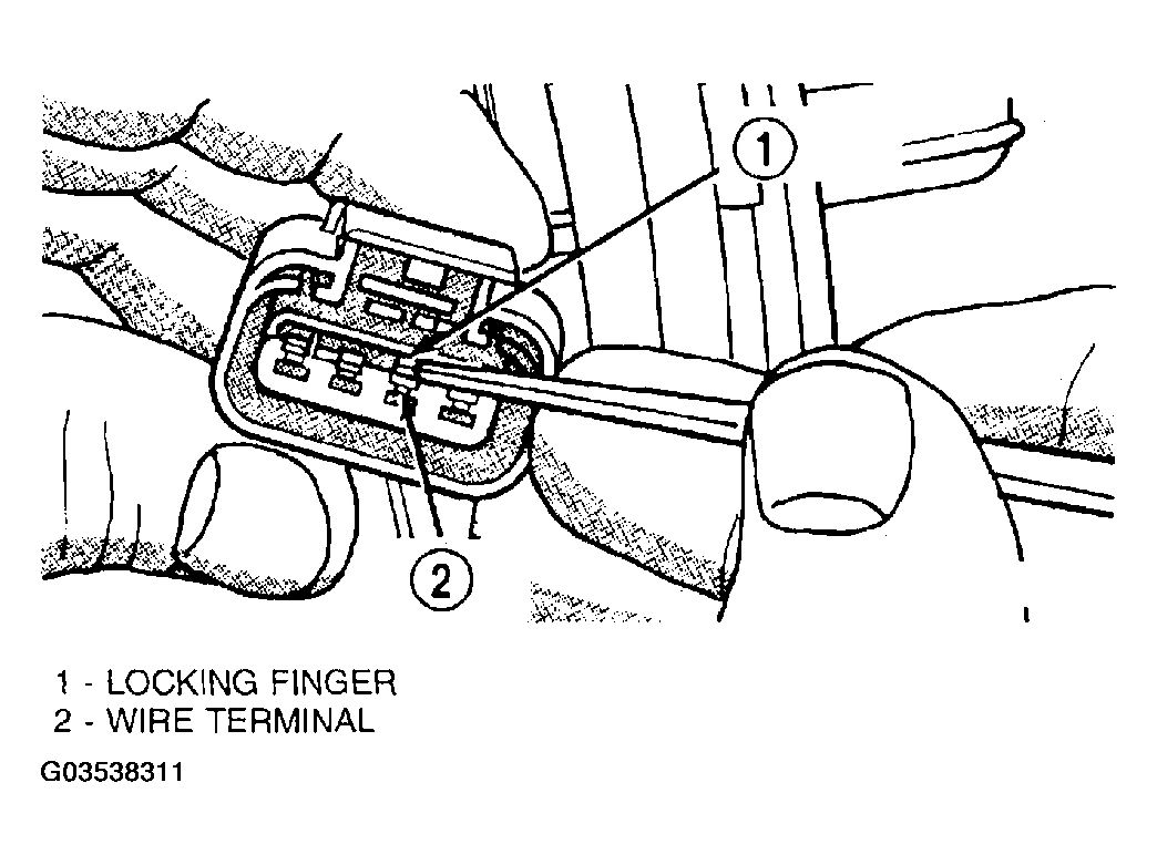 - Using a small screwdriver lift locking finger away from terminal and push terminal out of connector (Fig 3).