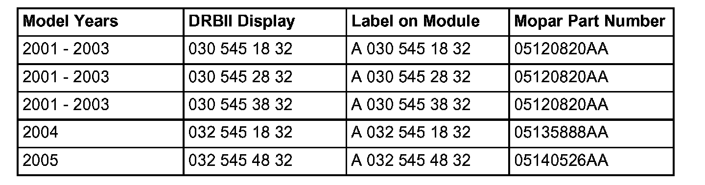 2. Use the DRBIII(R) to determine if any Diagnostic Trouble Codes (DTC's) are stored, record them on the repair order and repair as necessary before proceeding further with this service bulletin.