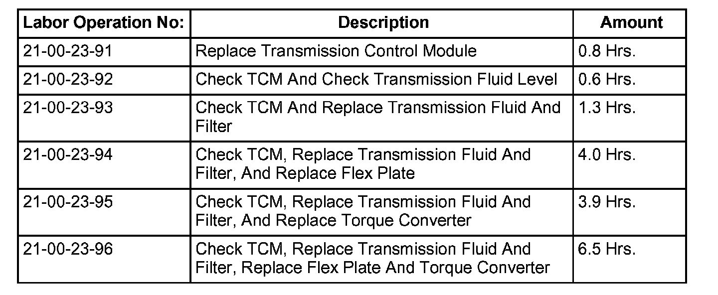 10. Change the filter and fluid in the transmission and the fluid in the torque converter using Mopar p/n 05127382AA Automatic Transmission Fluid. Refer to the service information available in TechCONNECT under: Service Info, 21 - Transmission/Transaxle/Automatic - Nag 1/Filter - Standard Procedure - Fluid/Filter Service.