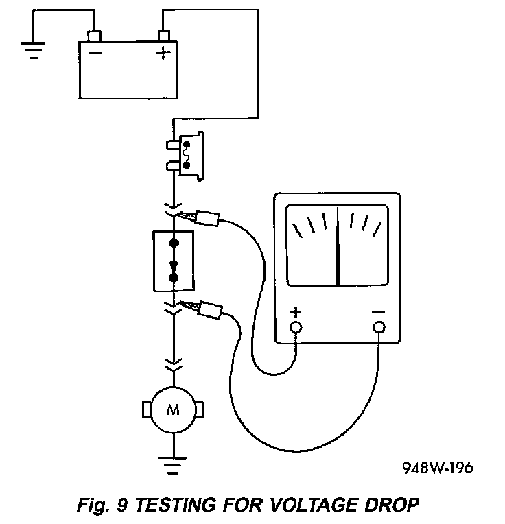 1. Connect the positive lead of the voltmeter to the side of the circuit closest to the battery (Fig. 9).