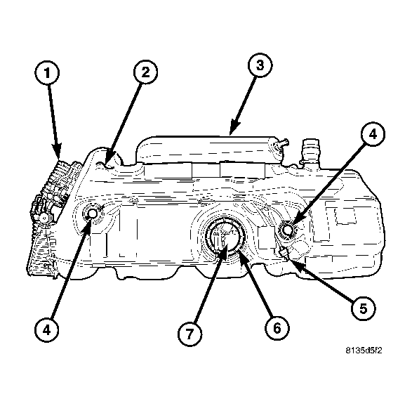 The fuel pump module is installed in the top of the fuel tank. See Fig 1. The pump module contains the following components: