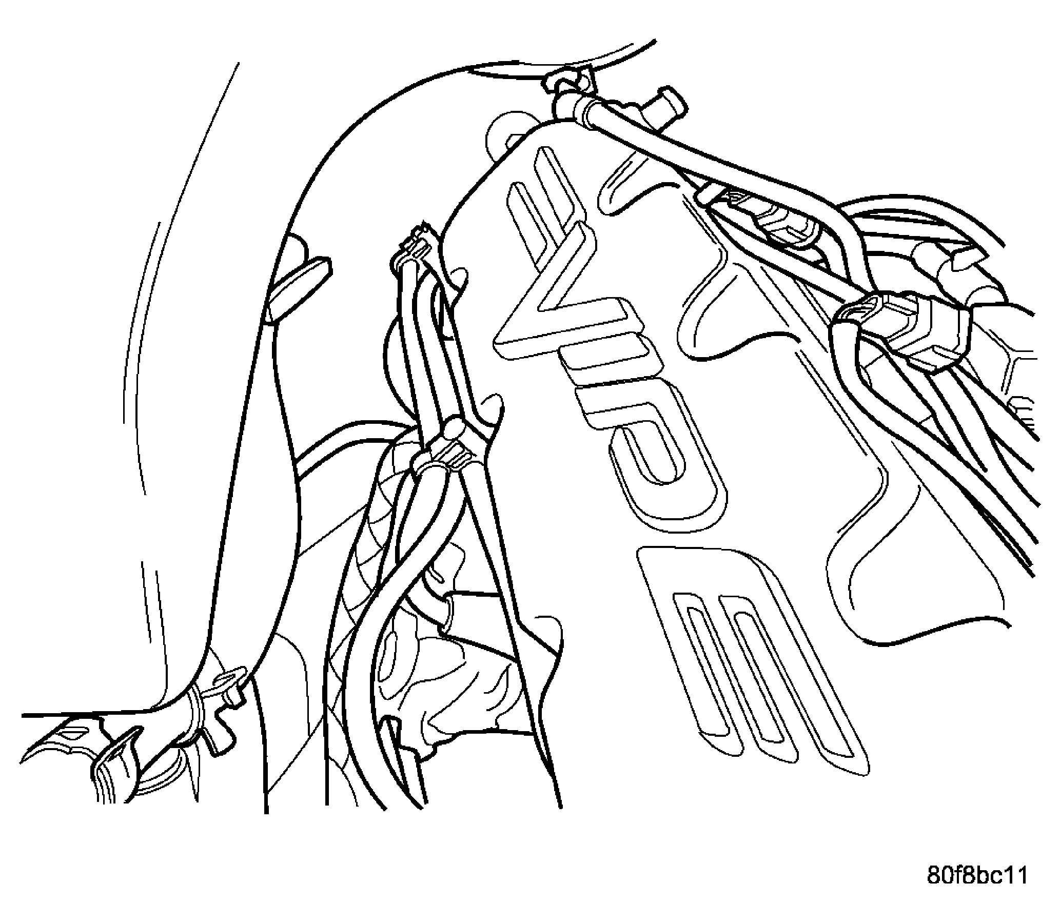 3. Sequentially install wires into separators clips mounted on double ended studs mounted on the outer side of valve cover. See Fig 2, Fig 3, and Fig 4. Start from the rear and work forward to the front of the engine.