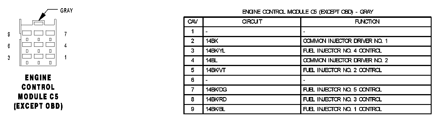 Engine Control Module C1 (Except OBD):