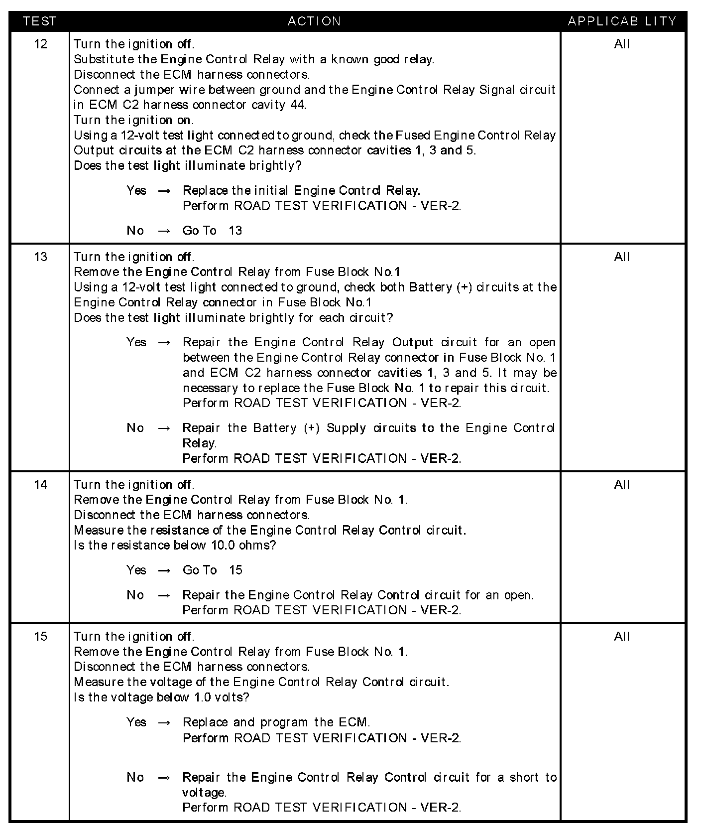- Engine control relay control circuit open