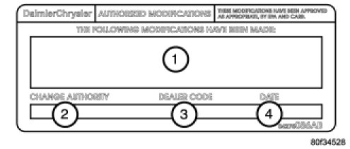 11. Type the necessary information on the "Authorized Modification Label" p/n 04275086AB and attach near the VECI label.