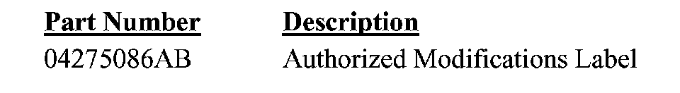 Due to the likelihood that the required labels are already in your parts inventory, no labels will be distributed initially. The following label may be ordered as needed.