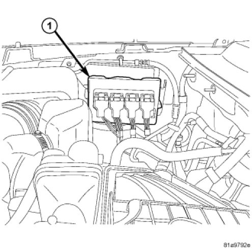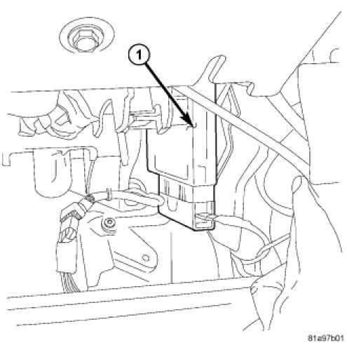 The Transmission Control Module (TCM) is a sub-module within the Powertrain Control Module (PCM) (1). The PCM is located on the right inner fender. The NGC IV (fourth-generation) Powertrain Control Module (PCM) provides integrated electronic control of all transmission functions.